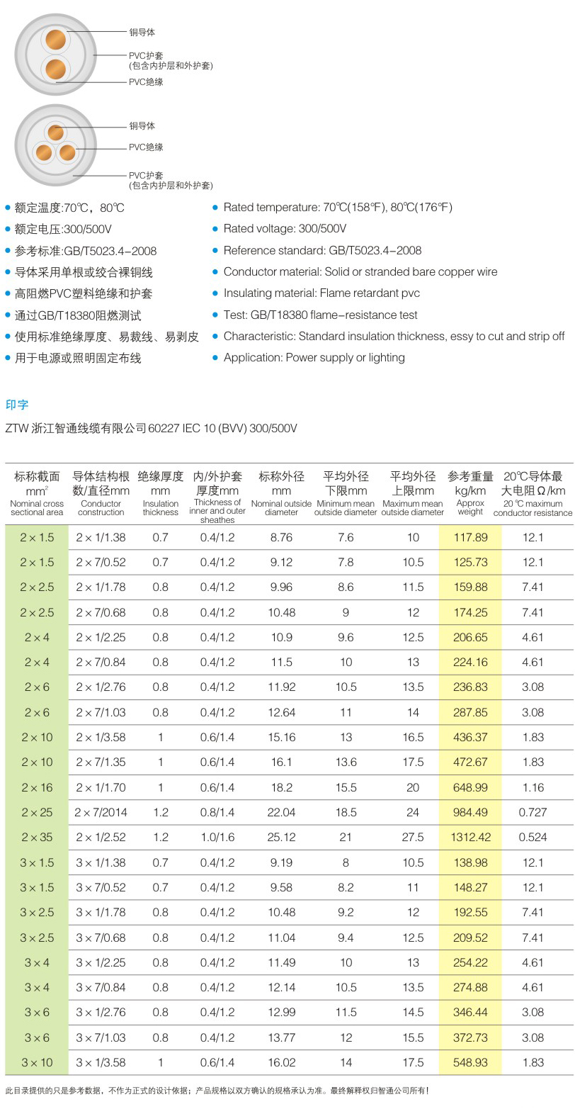 IEC10(BVV)轻型聚氯乙烯绝缘护套电缆